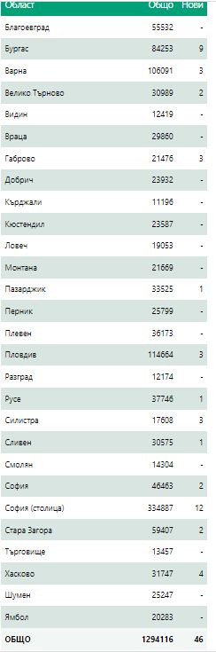 Новозаразени в страната - 46 (58.70% неваксинирани)