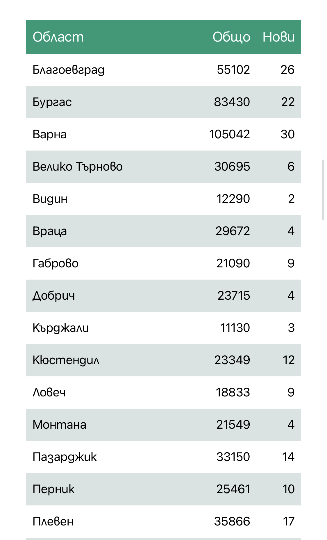 Новозаразени в страната - 409 (59 % неваксинирани)