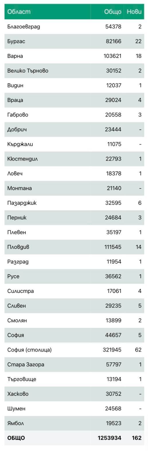 COVID кризата в цифри: 162 новозаразени, 14 от тях в Пловдив