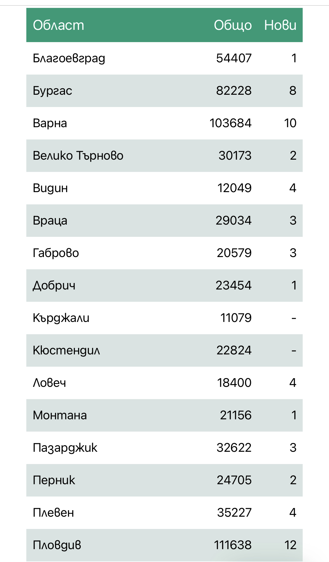 Новозаразени в страната - 188(65,96% неваксинирани)