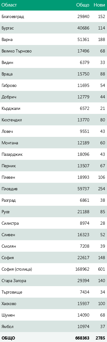 Новозаразени в страната - 2785 (82.94 % неваксинирани)