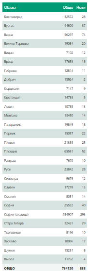 Новозаразени в страната - 838