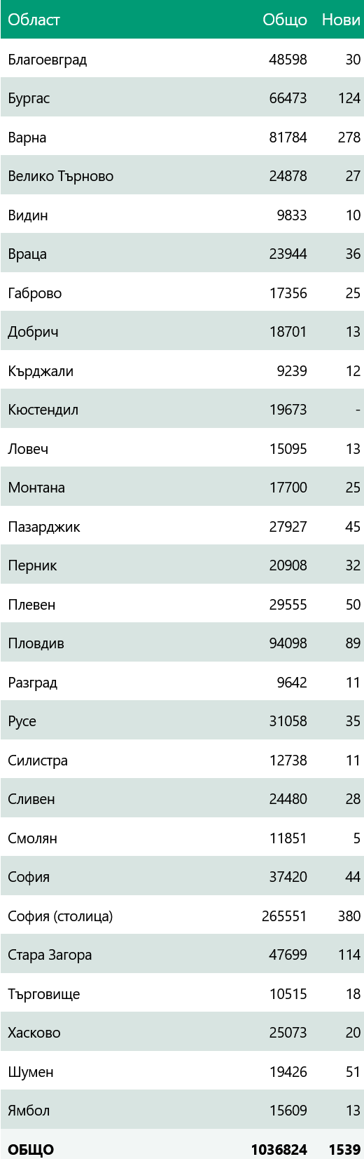 Заразени по Oбласти: