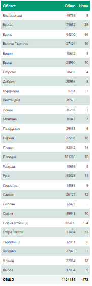 Новозаразени в страната - 472 (69.9% ваксинирани)
