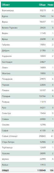COVID кризата в цифри: 156 нови случая, нито един починал