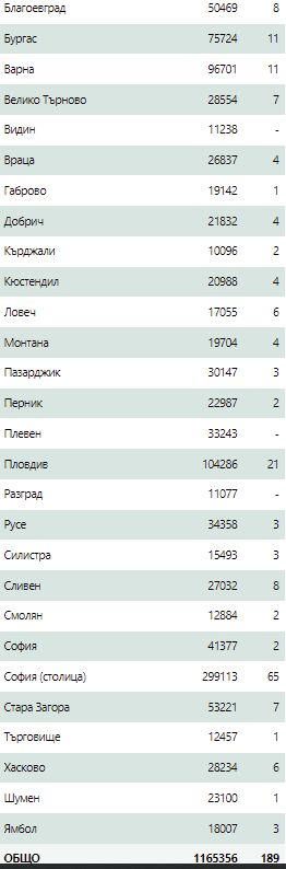 Новозаразени в страната - 189 (61,4% неваксинирани)