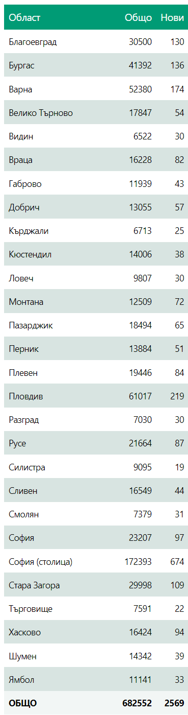 Новозаразени в страната - 2 569 (80,1% неваксинирани)