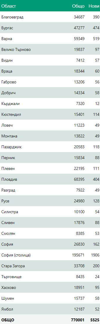 Новозаразени в страната - 5525 (71.42% неваксинирани)