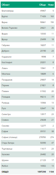 Новозаразени в страната - 1104