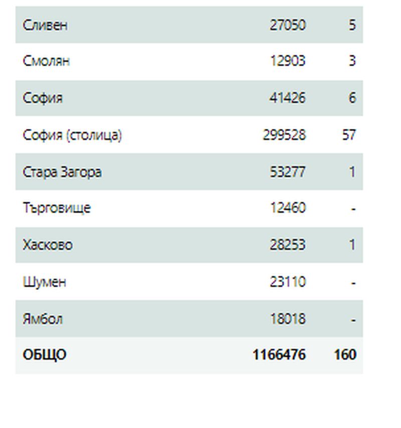 Новозаразени в страната - 160 (58.12% неваксинирани)