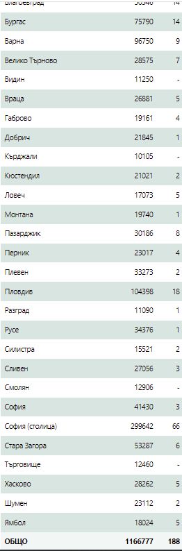 Новозаразени в страната - 188 (77.78%% неваксинирани)