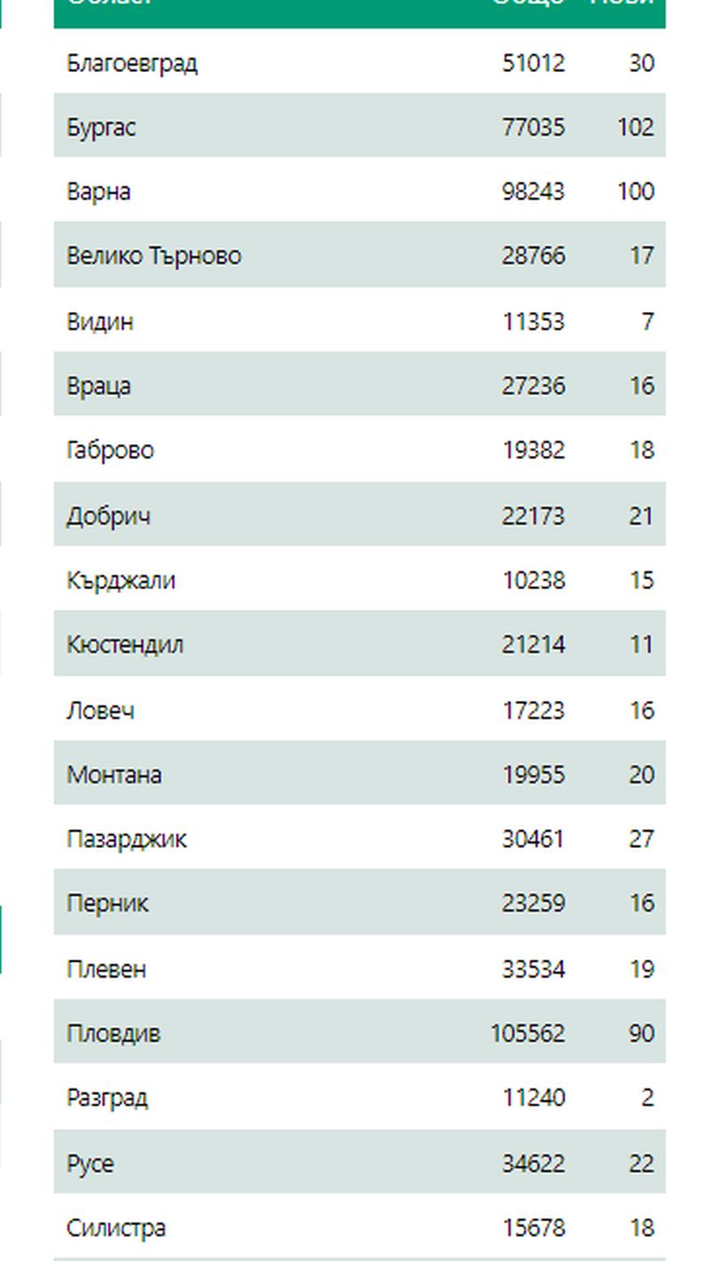 Новозаразени в страната - 1021 62.39(% неваксинирани)