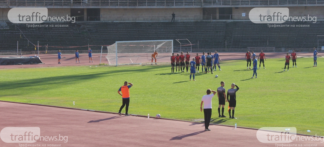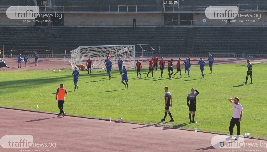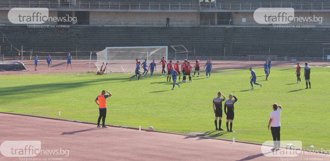 В 13-та минута Стойчев стреля с глава, само че вратарят Иванов избави.