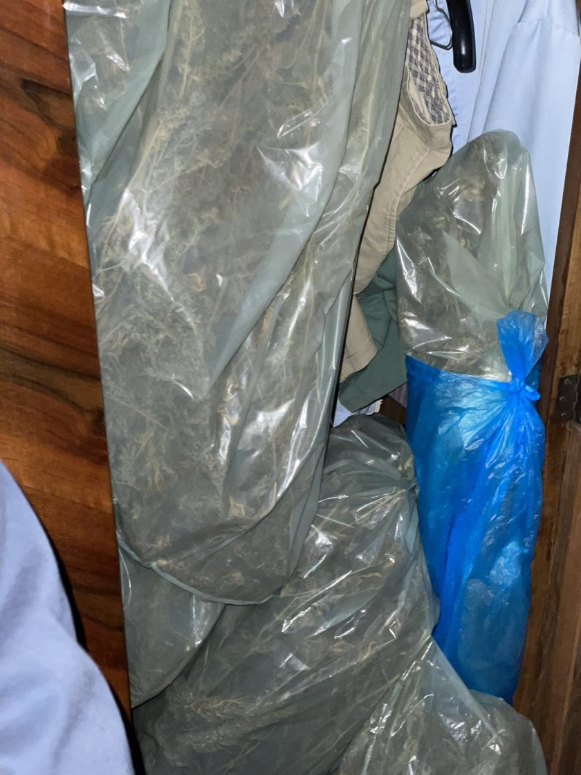 Марихуаната била натъпкана най-вече в чували, укрити в дрешник, известно количество имало в буркани, кофи, кутии и друга посуда.