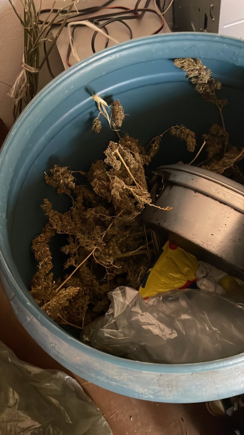 Отделни канабисови стръкове били сложени в бидони и на разнообразни места в помещението.