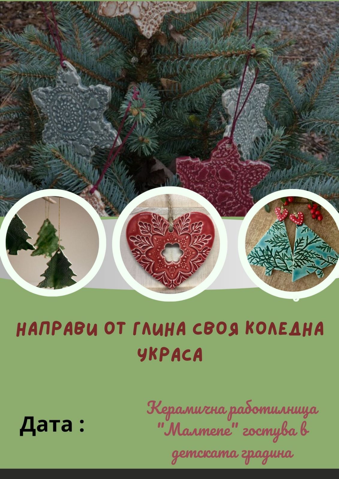 Изделията са предопределени за оцветяване от най-малките гости в спонтанната работилница на дядо Коледа в „ Малтепе “. Понякога камбанката е със смешно лице, от време на време – със ужасно, а различен път – с благо и положително. Всяко дете може да декорира една от тях или да събере цялата сбирка.