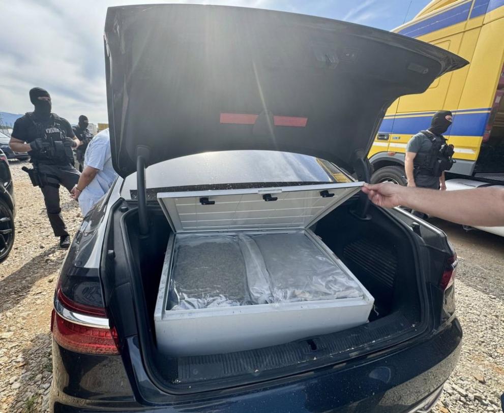 ГДБОП Акцията е извършена на 26 август. Дрогата е била в кола . Претърсени са и два адреса на територията на страната.
