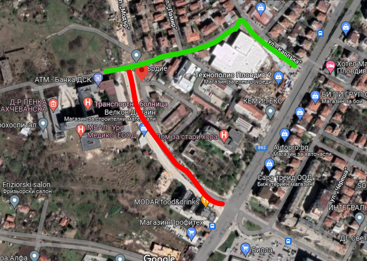Спират придвижването по ул. „ Модър “ – в сектора от „ Коматевско шосе “ до ул. „ Колхида “. Това ще се случи на следващия ден, 10 ноември до 23 март 2023 година. Причината е построяването на южния обходен колектор по план на „ ВиК “ – Пловдив.