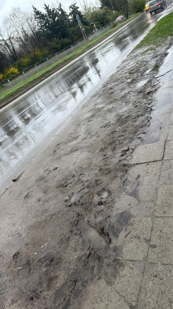 Жителката на София Моника Маркова показа възмущението си в обществената мрежа Facebook, публикувайки фотография, на която ясно се вижда насъбраната тиня върху тротоара.