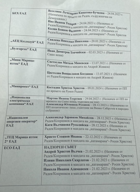 В документа, който сподели пред публицистите има лист с назначения в огромни държавни предприятия в енергийния бранш.