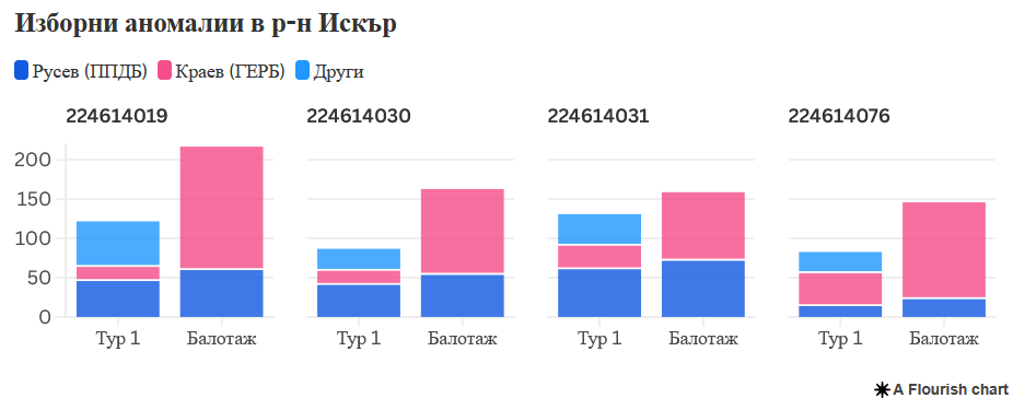 В някои секции интензивността и поддръжката за ГЕРБ се усилват десетократно. Проверката на резултатите в обособени секции в „ Дружба 1 “ разкрива необикновен растеж в гласовете за Краев: