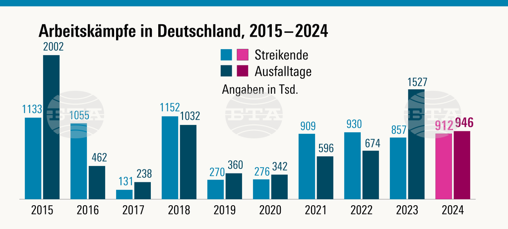 По-малко стачки, но повече участници в трудови спорове в Германия през 2024 г. отчита нов доклад