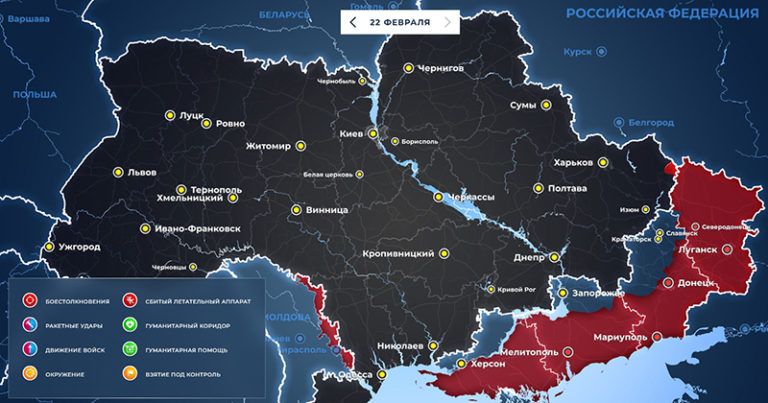 Карта на военните дейности в Украйна за през днешния ден, 23 февруари 2023 година