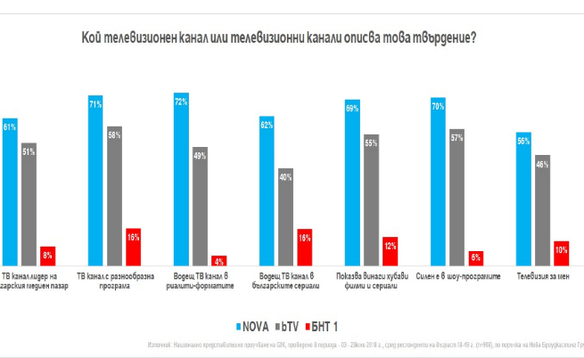 Над 60% от интервюираните в изследването на GFK считат, че NOVA е телевизионният канал водач на българския медиен пазар.