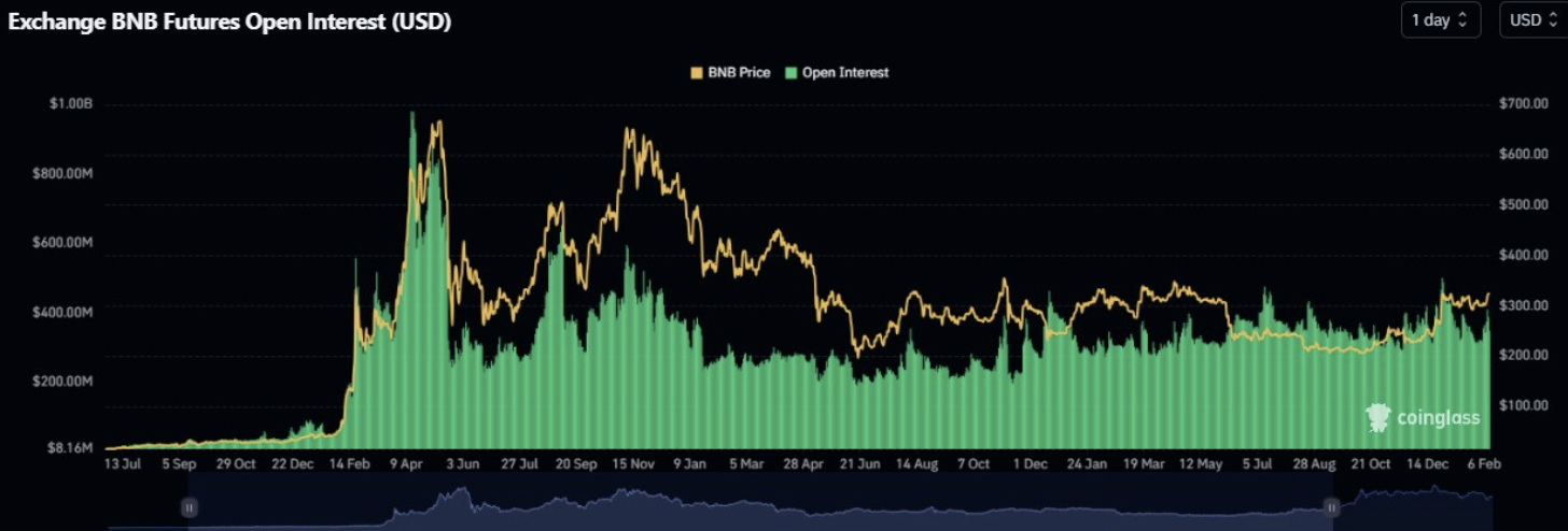 Освен това в продължение на месеци не е имало основна смяна в данните за открития интерес на BNB на борсата. Въпреки неотдавнашните ценови съмнения равнищата на открития интерес останаха релативно постоянни.