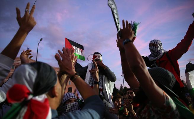 Според оценки на гръцката полиция близо 10 000 души са взели участие в сряда вечер в пропалестински протест в центъра на Атина, съобщи организация ДПА.