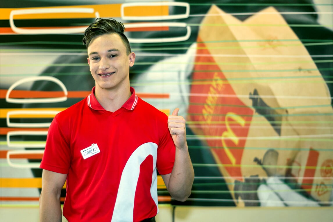 Гъвкавото работно време във веригата кара Георги Василев от София да избере ресторант на McDonald’s за своя първа работа. Георги е възпитаник в Софийска професионална гимназия по туризъм и този вид работа му разрешава да учи и да работи по едно и също време.