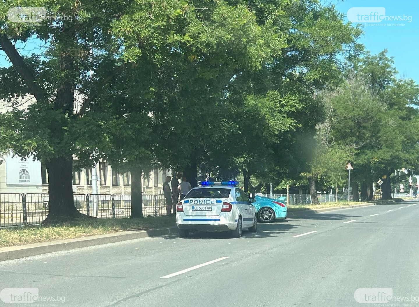 Спортен автомобил се заби в дърво на булевард в Пловдив СНИМКИ