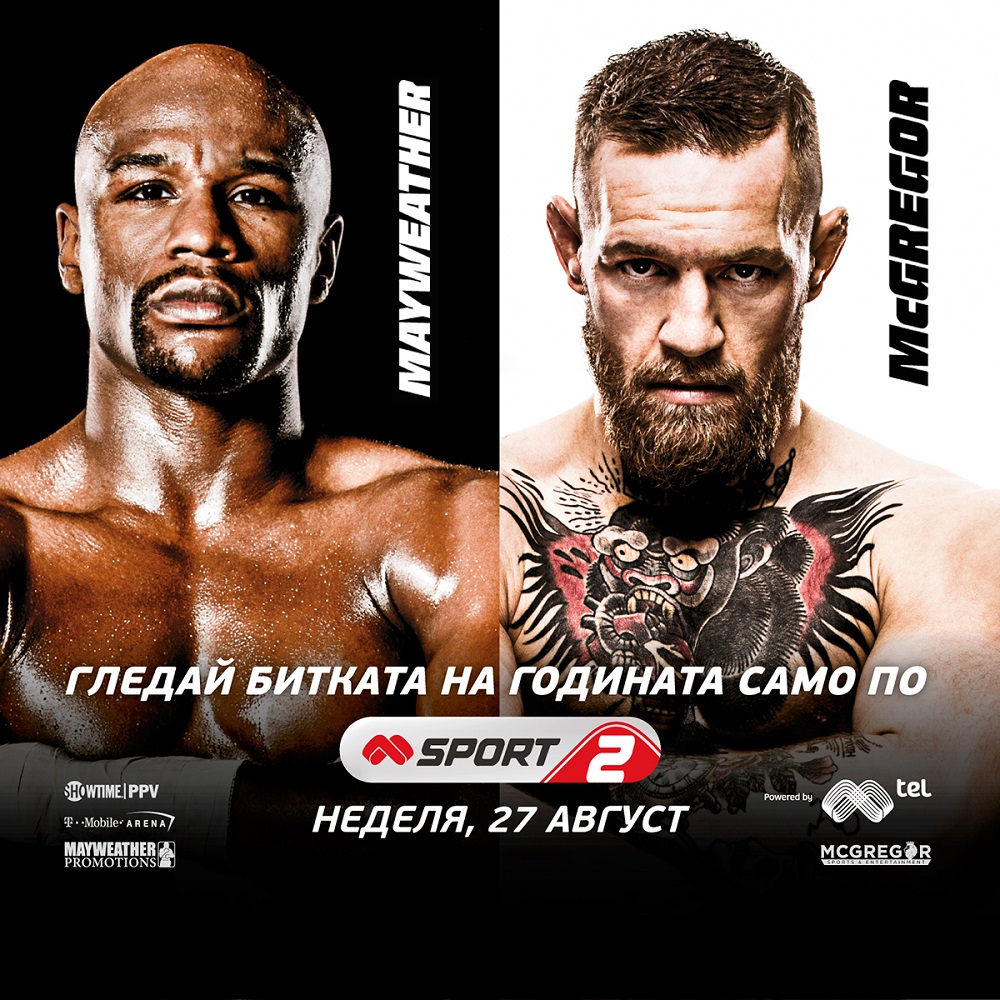 Mtel Sport 2 ще излъчи онлайн най-очакваното спортно събитие на годината – боксовият мач сред Флойд Мейуедър и Конър Макгрегър. Най-голямата борба в историята на бойните спортове ще се предава извънредно у нас от спортния канал в ранните часове на 27 август.