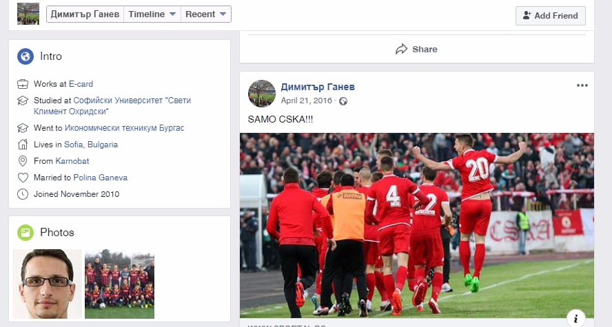 На един от постовете пък в формалната си страница във " Facebook " Ганев е качил фотография по какъв начин футболисти в алено се радват и е написал: " Само ЦСКА "!