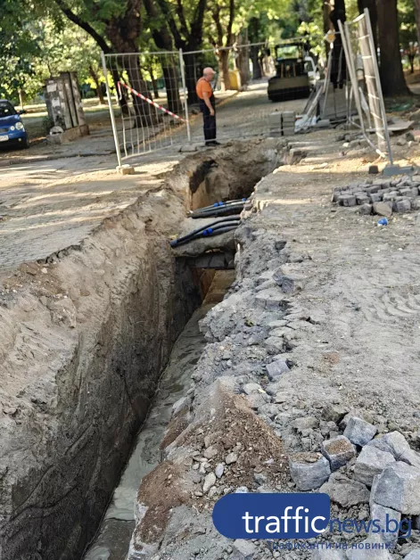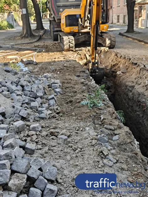 Строителите от „ Парсек груп “, които правят ремонта на улицата, са подали сигнал до ВиК - Пловдив за повредата.