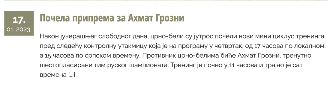 Справка в уеб страницата на Партизан демонстрира, че на същата дата и час сърбите са от дълго време са имали очакван мач, само че не с ЦСКА 1948, а против съветския Ахмат (Грозни). “След вчерашния почивен ден, тази заран черно-белите започнаха нов мини цикъл от тренировки преди идващия надзорен мач, който е плануван за четвъртък от 17:00 ч. локално и 15:00 ч. сръбско време. Съперник на “черно-белите ” ще бъде Ахмат Грозни, който сега е шести в съветското състезание ”, пишат “гробарите ” на 17 януари.