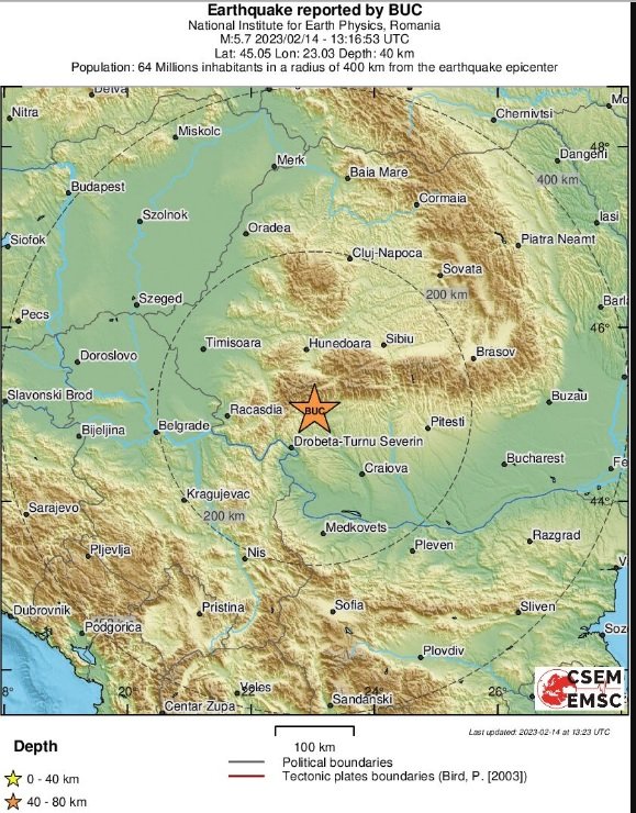 Междувременно от Националния институт по геофизика на Румъния оповестяват, че земетресение с магнитуд 4,5 по Рихтер е било записано в 15q16 ч. в Олтения, окръг Вълча в Западна Румъния. То е било с дълбочина 28 к и е усетено най-осезаемо в град Тимишоара. И там няма данни за обилни опустошения и жертви.