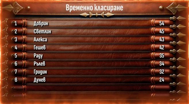 По време на конфликтите Добрин показва самообладание и поредност, побеждавайки трима съществени противници. Особено основна бе финалната му среща против Раду, в която сподели непоклатимост и отличната си подготовка. С тази победа той усилва преднината си в генералното класиране, само че конкуренцията остава безпощадна, а идният заключителен шампионат може да промени всичко.