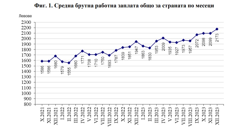 Средната заплата в публичния бранш през последното тримесечие на 2023 година е повишена с 14% по отношение на същия интервал на предходната година, а в частния – с 12.7%.