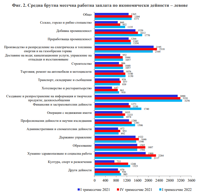 Ако съпоставяме първите три месеца на 2021г. с тези на 2022г., виждаме, че заплатата в публичния бранш се е качила с 3.3%, а в частния бранш - с 10.4%.