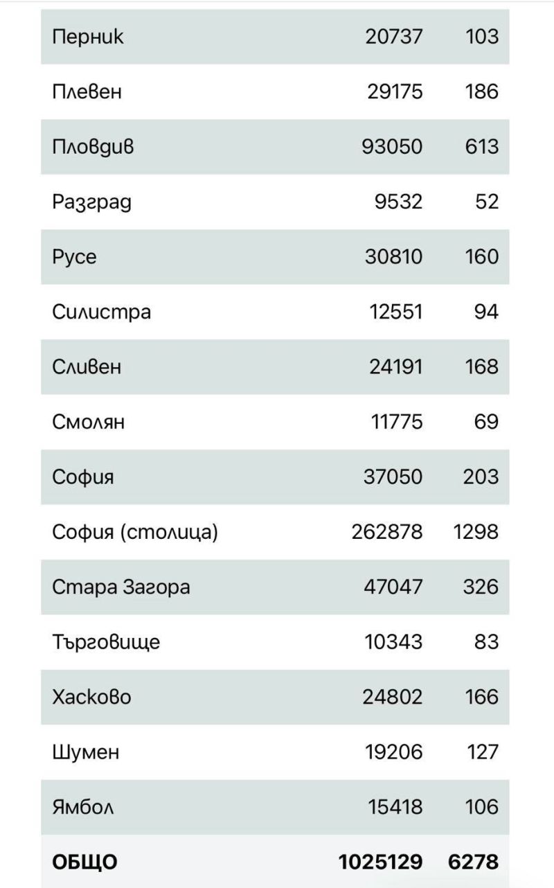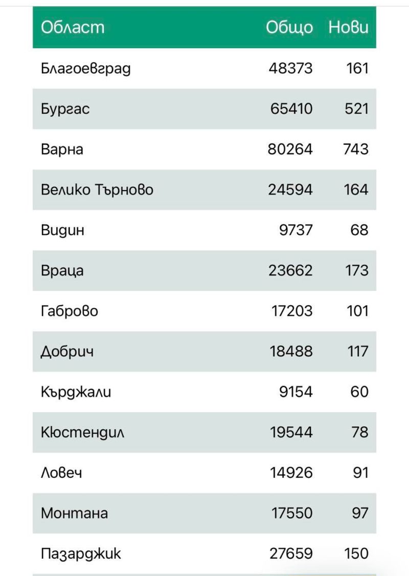 София продължава да държи първото място – новозаразените за ден са 1298. Второто място е за Варна със 743, третото пък е за Пловдив – 613 за ден.