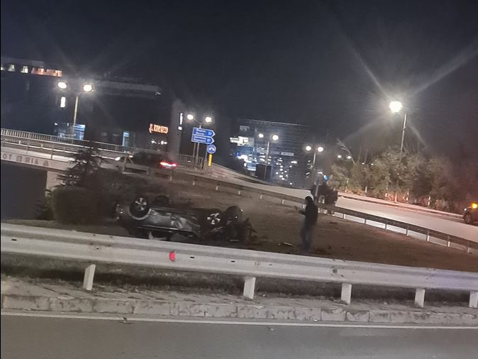 Кола се е обърнала в канавката на кръговото кръстовището за " Драгалевци ". Произшествието е станало към 12 часа през нощта, сигнализират жители.