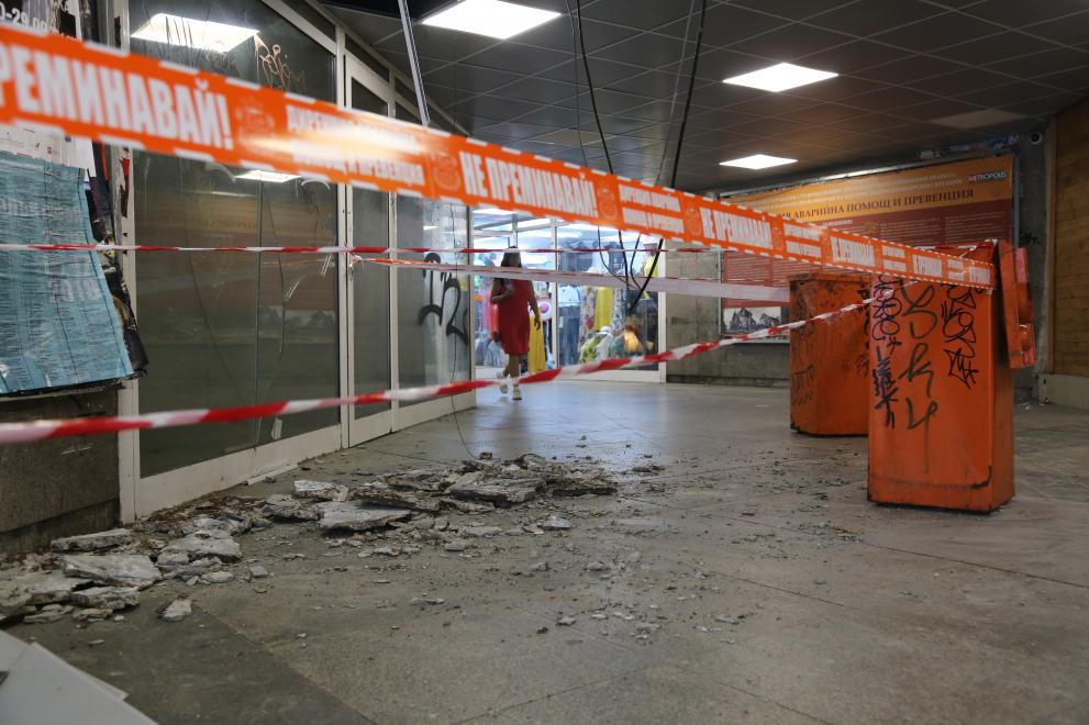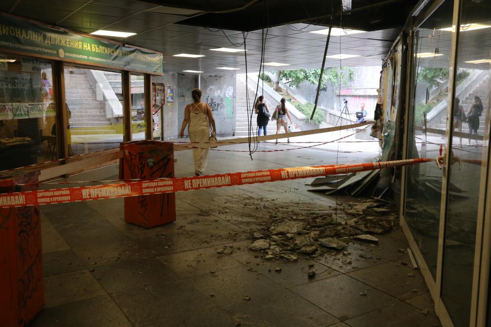 Срути се част от покривната структура в подлеза пред Спортната палата в София – на кръстовището на ул. „ Гурко ” и бул. „ Левски ”.