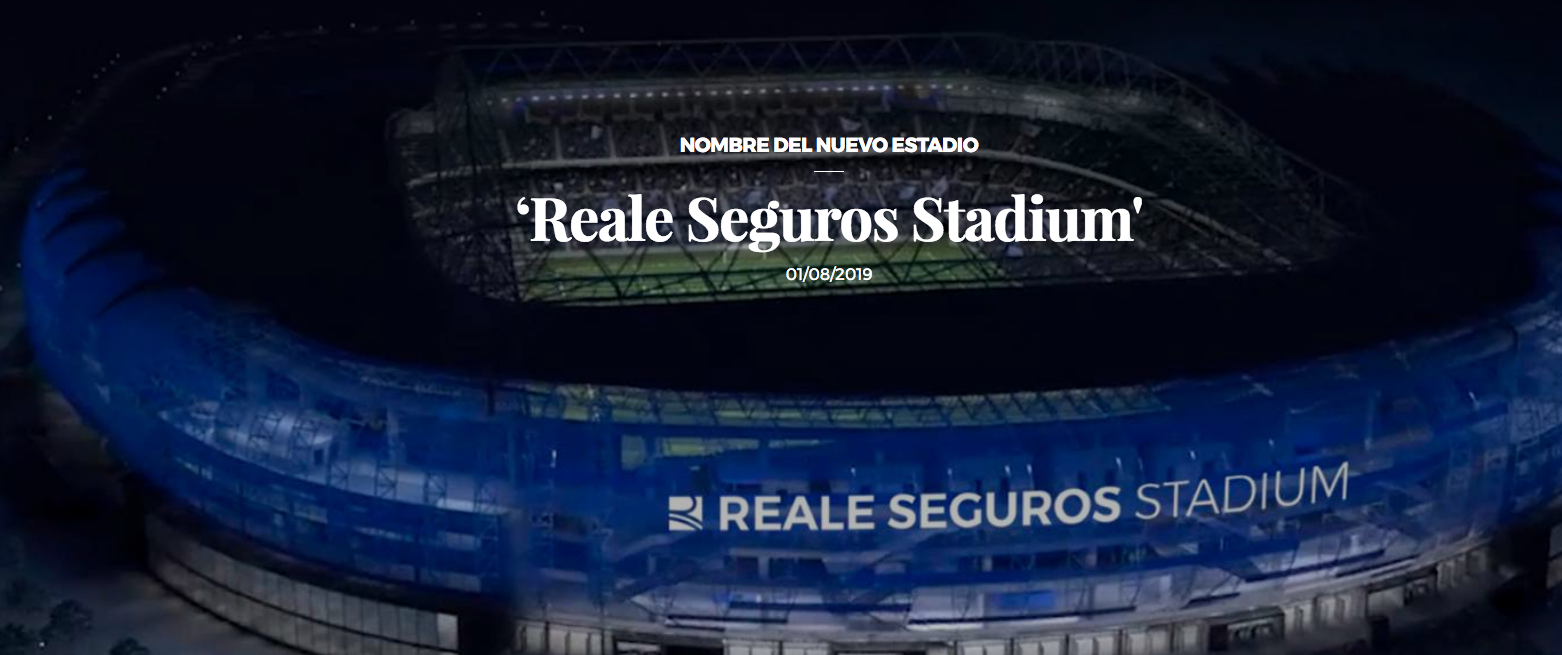 Стадион “Аноета” ще се назовава “Reale Seguros Stadium” в идващите шест сезона. Това оповестиха от Реал Сосиедад в публично известие. Не е ясно каква сума ще влезе в касата на “чури урдин” за съглашението. В момента на стадиона на баските се прави ремонтна активност, която се чака да завърши в средата на септември.