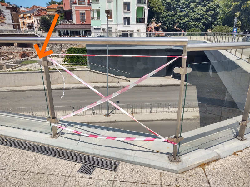 Пловдивчанин: Счупено стъкло от оградата на форум “Север“ два месеца стои овързано с ленти