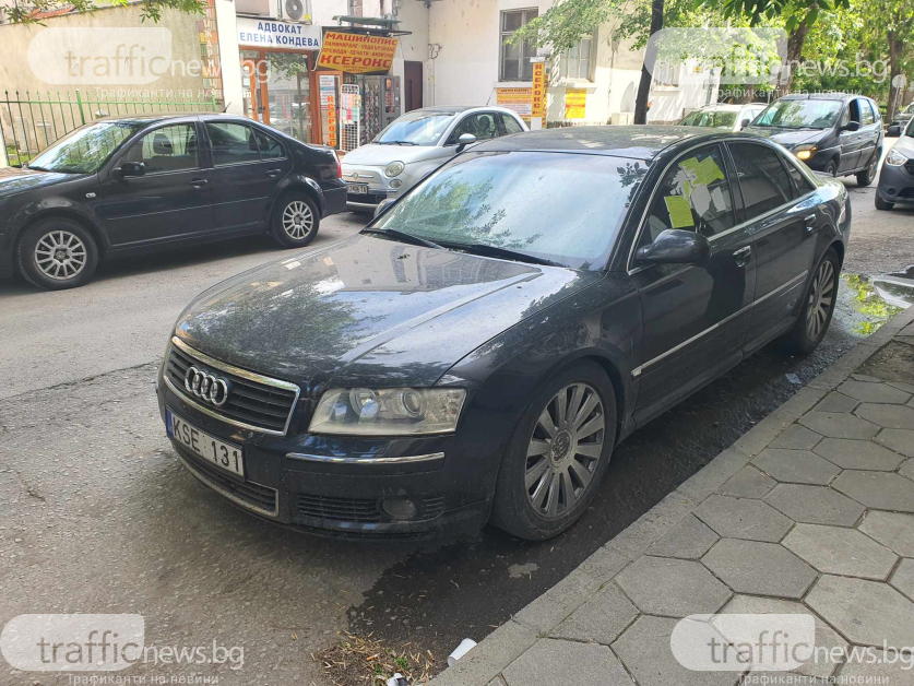 Репортерска инспекция сподели, че на въпросната улица „ Хан Кубрат ” ежедневно паркират десетки коли в нарушаване, като чиновници на „ Oбщинска защита ” прецизно наблюдават и глобяват нарушителите, а задграничният автомобил не прави изключение. Въпреки че на страничното шофьорско стъкло от дълго време не е останало място за лепене на „ честитки ”, аудито продължава да пречи на придвижването без да бъде репатрирано.