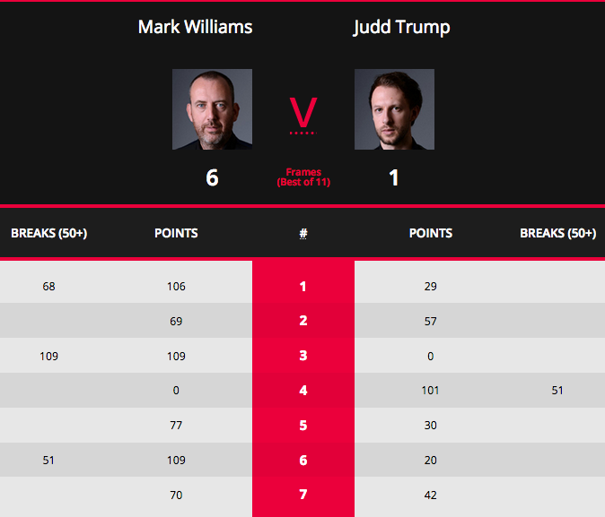 42-годишният Уилямс има действителен късмет за 20-а ранкинг купа в блестящата си кариера, откакто продължава възраждането си през сегашния сезон. През 2011-а той също завоюва купата в “Темподром”, а против Тръмп бе непогрешим и по най-хубавия метод се възползва от грешките напрегнат на Асото в колодата.