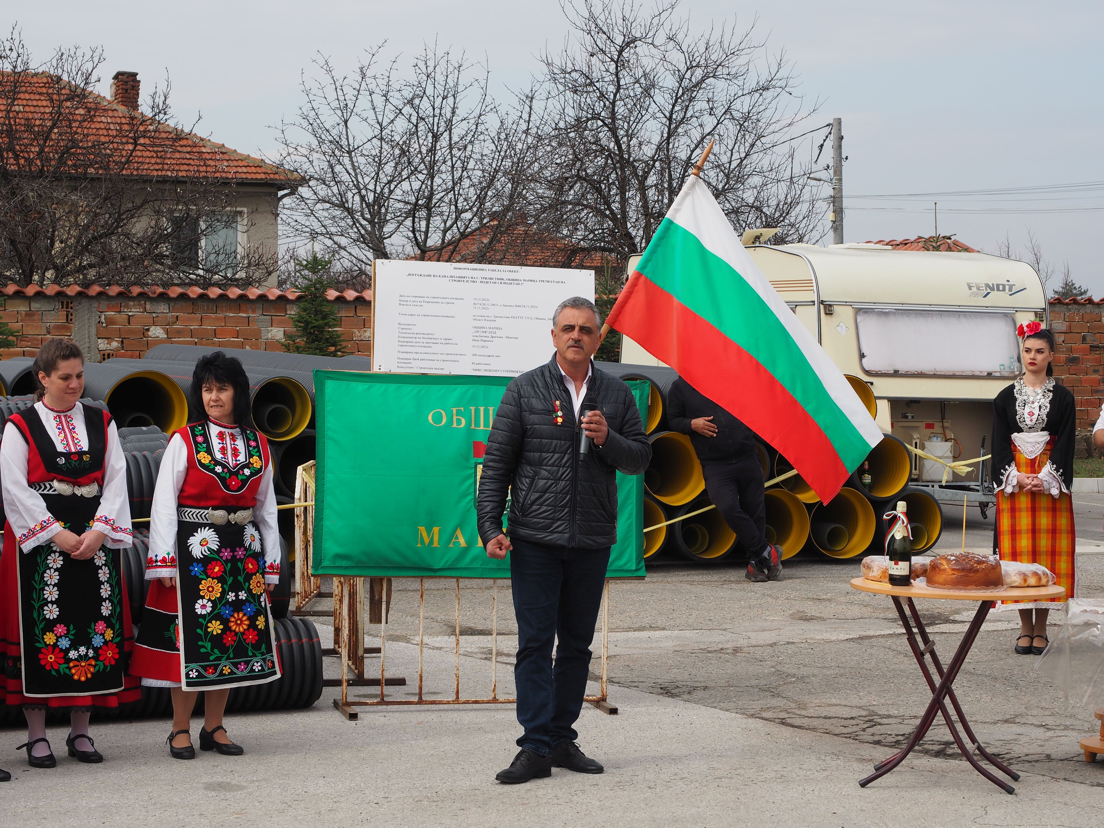 „ Днешният ден е незабравим за Община „ Марица “ и за с. Трилистник, тъй като даваме алегоричен старт на решаващия, финален стадий от водния цикъл на селото. След приключването му с. Трилистник ще има изцяло функционираща канализация. Благодаря на служебното държавно управление за отпуснатите средства, които ни дадоха опция да решим този проблем “, уточни Димитър Иванов.