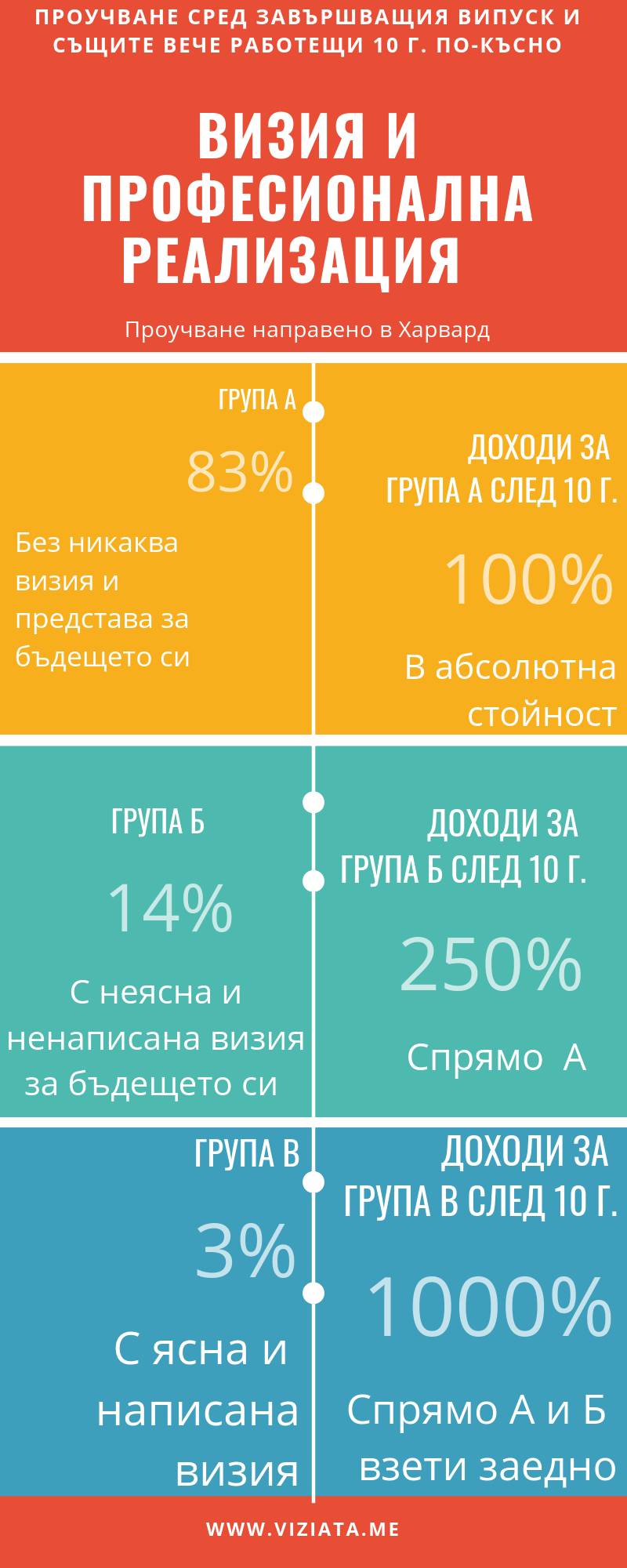 Стартира акция с ексцентричен метод за създаване на бъдеща кариера и реализация за възпитаници и студенти, както и за професионално осмисляне и целеполагане за интензивно работещи хора. Наречена е визията.ми и се състои в осмисляне и конфигуриране на бъдещето на човек по този начин, че да стане достижимо и реалистично. Множество сполучливи хора и водачи натъртват на смисъла за всеки, който желае да реализира персонална реализация, да има своя визия. Арнолд Шварценегер, създателят на Амазон Джеф Безос, артистът Уил Смит, водещата Опра Уинфри, скиорката Линдзи Вон и доста други употребяват силата на визуализацията с цел да реализират задачите си.