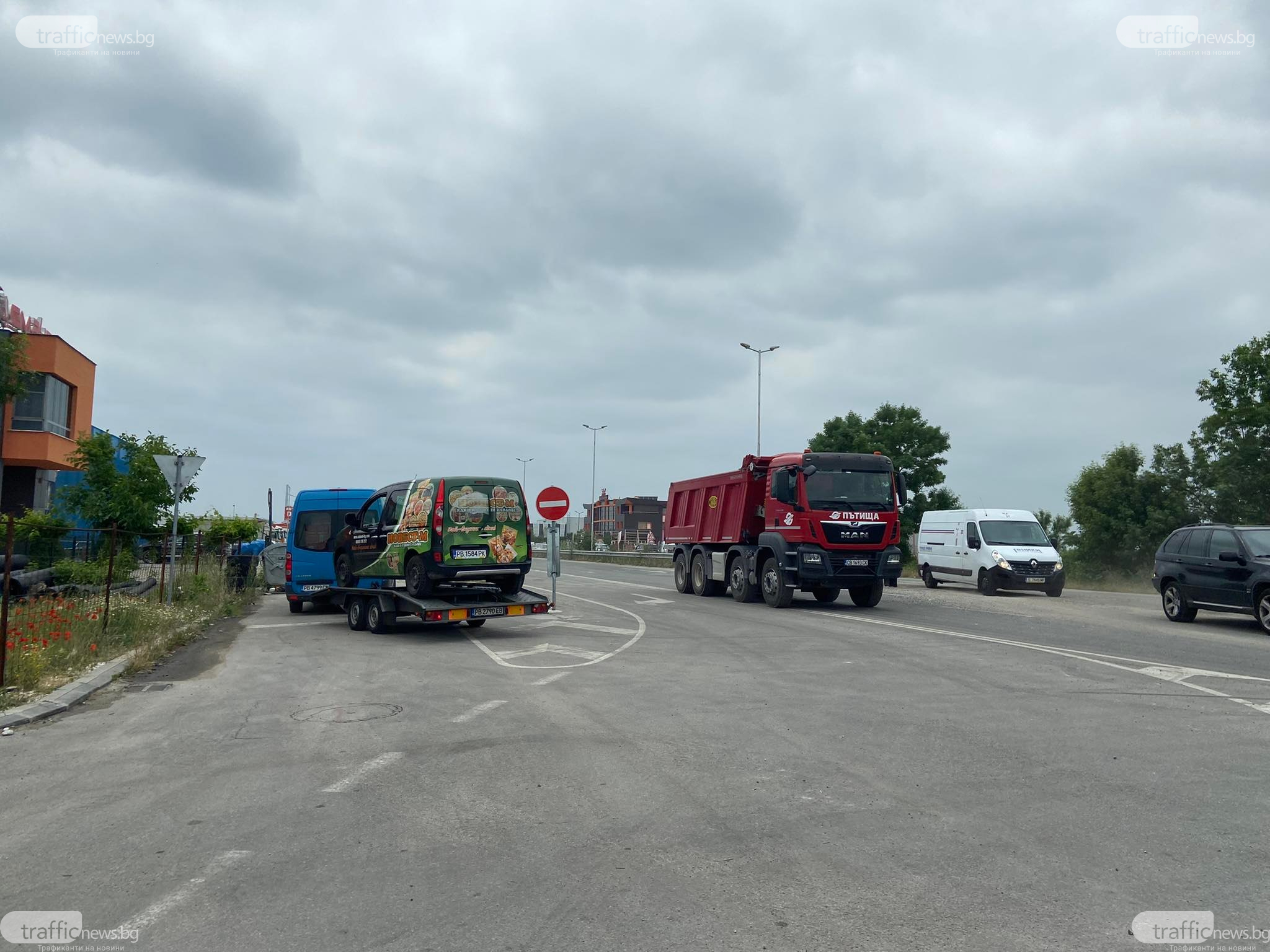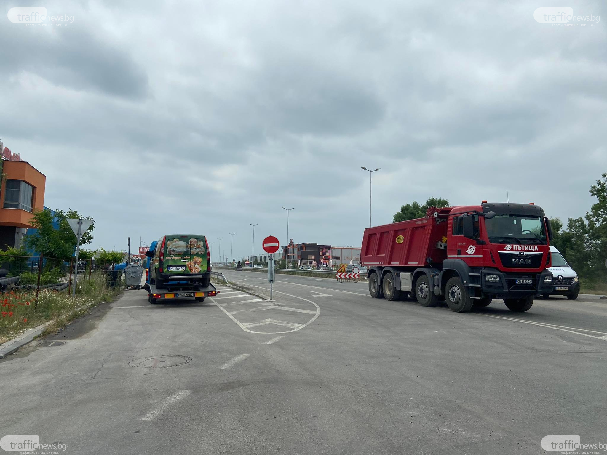Хаос на Карловско шосе заради ремонтите - коли минават покрай машини, други в насрещното